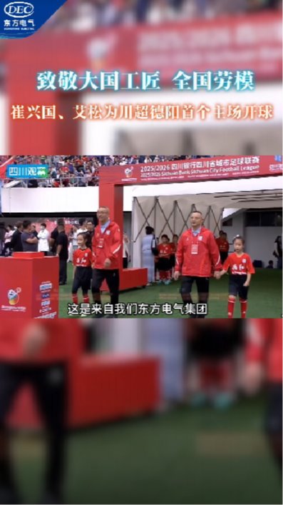 大國工匠崔興國、全國勞模艾松為“川超”德陽首個主場開球。